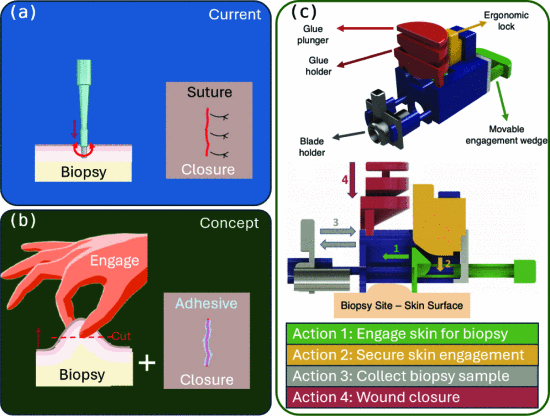 A. Kopliku, J. Chen, Y. Cai, K. Fronhofer, E. Chatzilakou, J. Connor, E. Dommasch, D.G. Li, E. Kalodner-Martin, A.K. Yetisen, G. Traverso, “A Device for Automatic Punch Biopsy and Simultaneous Wound Closure,” in 2025 47th Annual International Conference of the IEEE Engineering in Medicine and Biology Society (EMBC), Jul. 2025, pp. 1–5. doi: 10.1109/EMBC58623.2025.11252613.